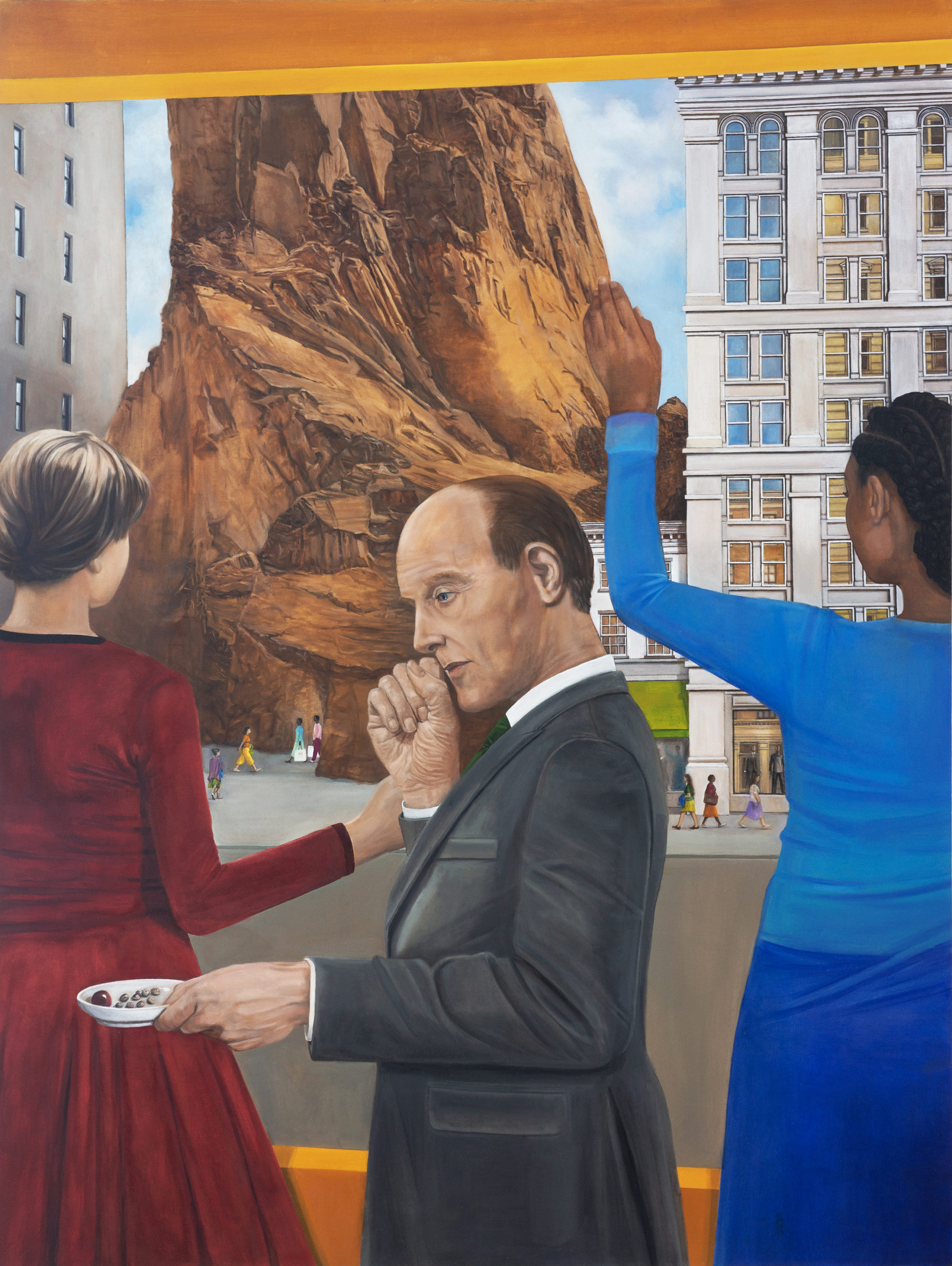Born in 1968 in London, Andrew Lewis lives and works in Argenton-sur-Creuse. He develops the idea of interaction between characters both human or sculpted and their immediate environment, which tends to create a group dynamic. His works show all the innovation and ingenuity that we’ve had to use to develop within the bosom of society which in turn has begun to function like an organism abolishing its own privileges, thus breaking the codes that it had eagerly created not so long before. Andrew Lewis intends to make an original synthesis between the painterly transposition of calm and hieratic characters and time in its most fleeing, mobile and evolving aspects. His figures evoke Robert Musil’s ones. They are men and woman without evident “qualities” who, once freed of the sediments of their own milieu and epoch, become extremely sensitive to all experiments and act as a sort of trans-historic multiple conscience.