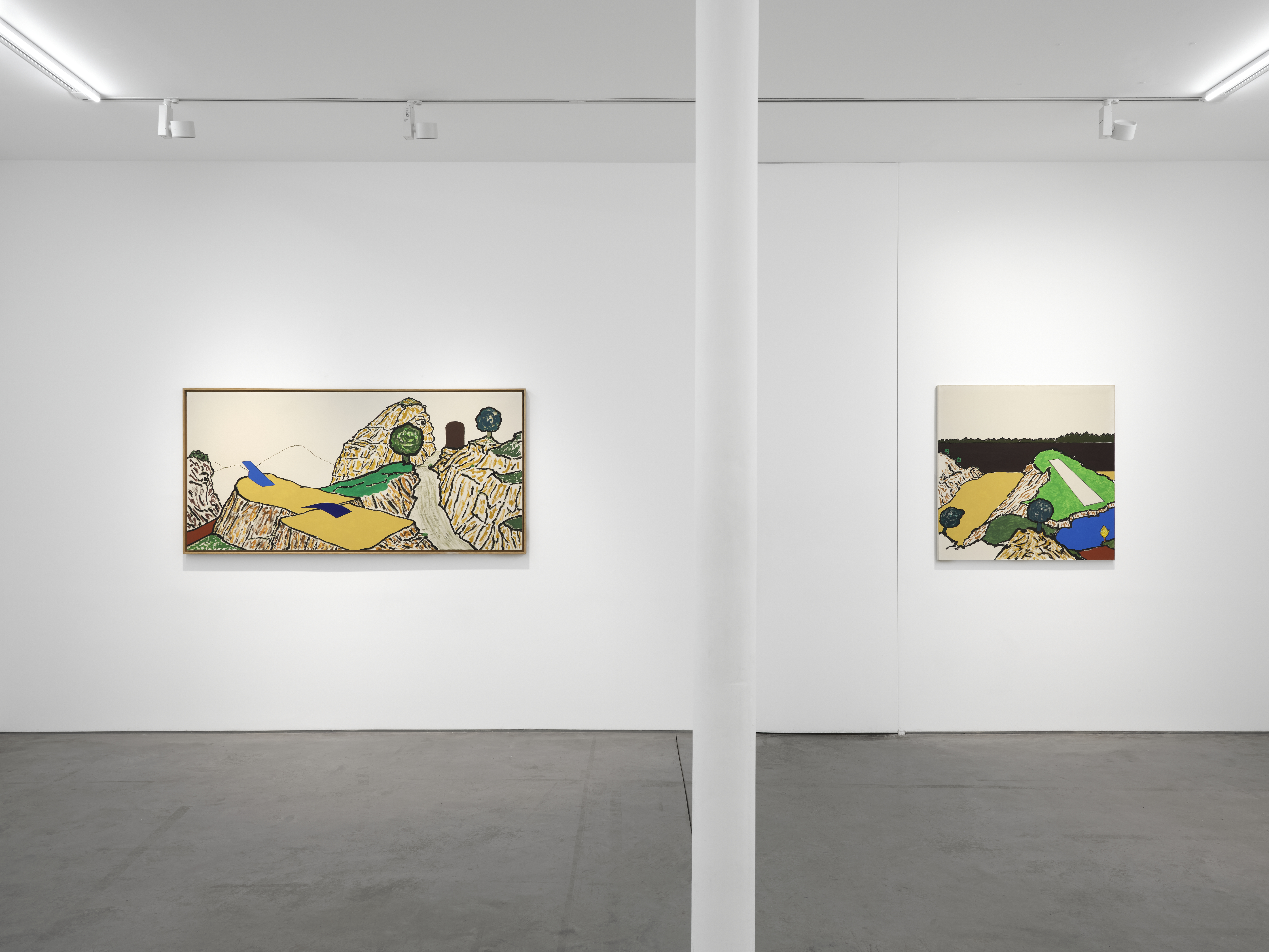 Dix ans après la première exposition de l’artiste à la galerie, Jean-Michel Sanejouand. Espaces réels, espaces imaginaires réunit deux ensembles majeurs de son œuvre, les Calligraphies d’humeur [1968-1978] et les Espaces-Peintures [1978-1986]. Une partie des œuvres montrées à cette occasion ont été présentées lors des expositions rétrospectives de l’artiste au Palais des Beaux-Arts à Lyon en 1986 et au Centre Pompidou à Paris en 1995. Ces deux événements ont offert une reconnaissance institutionnelle déterminante à un parcours réglée par une logique interne où chaque série ouvre la voie à la suivante et lui permet de renaître sous une forme nouvelle.