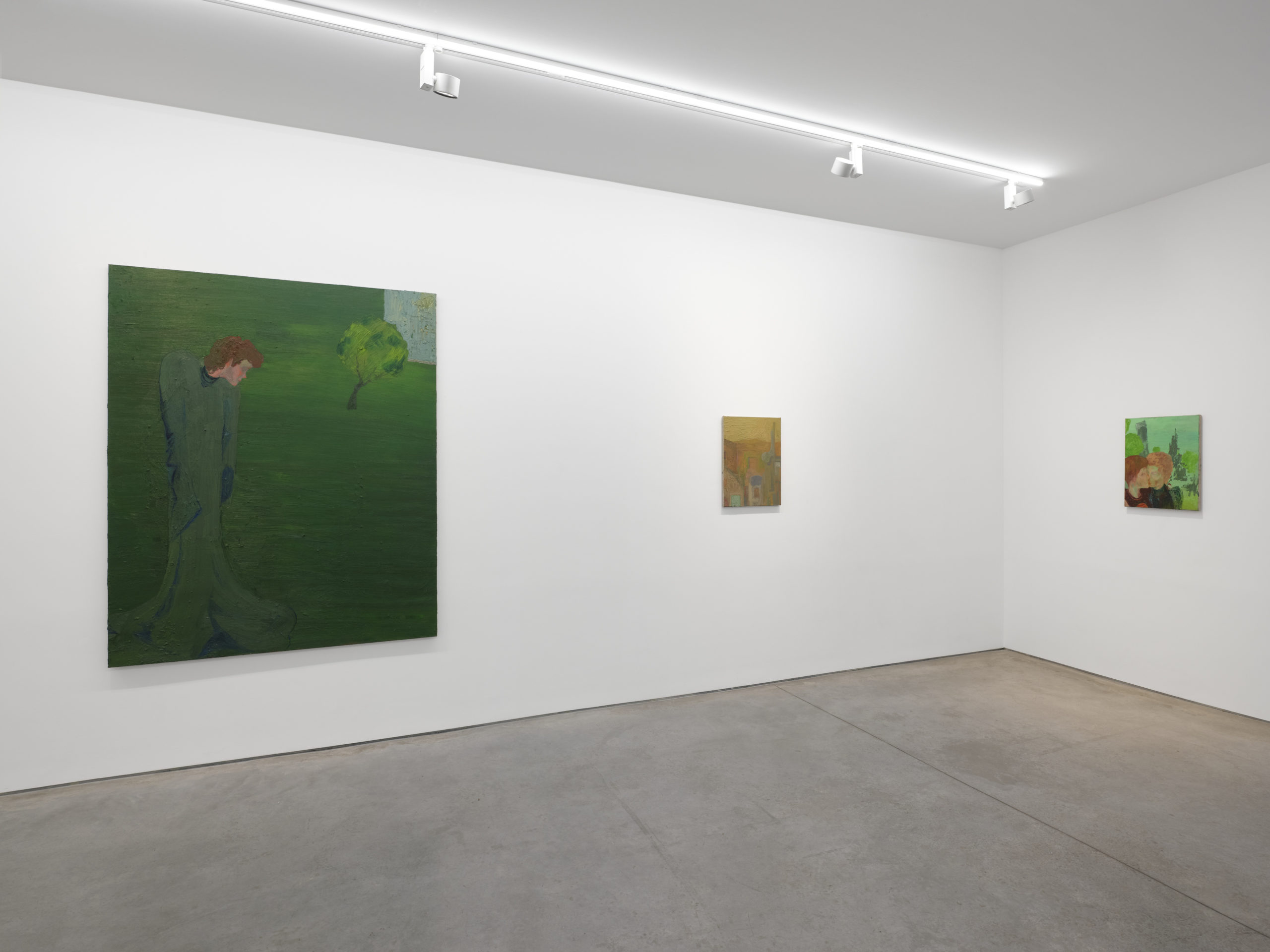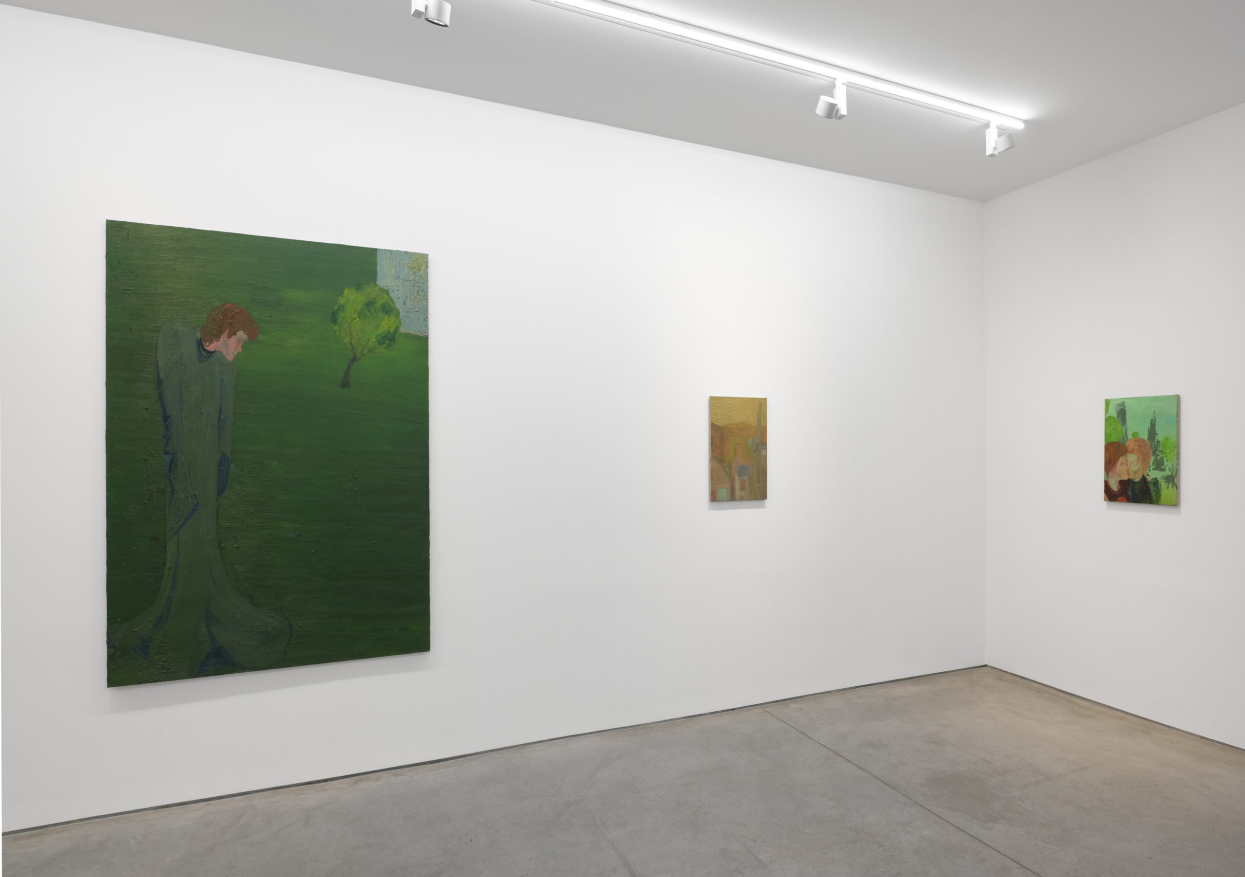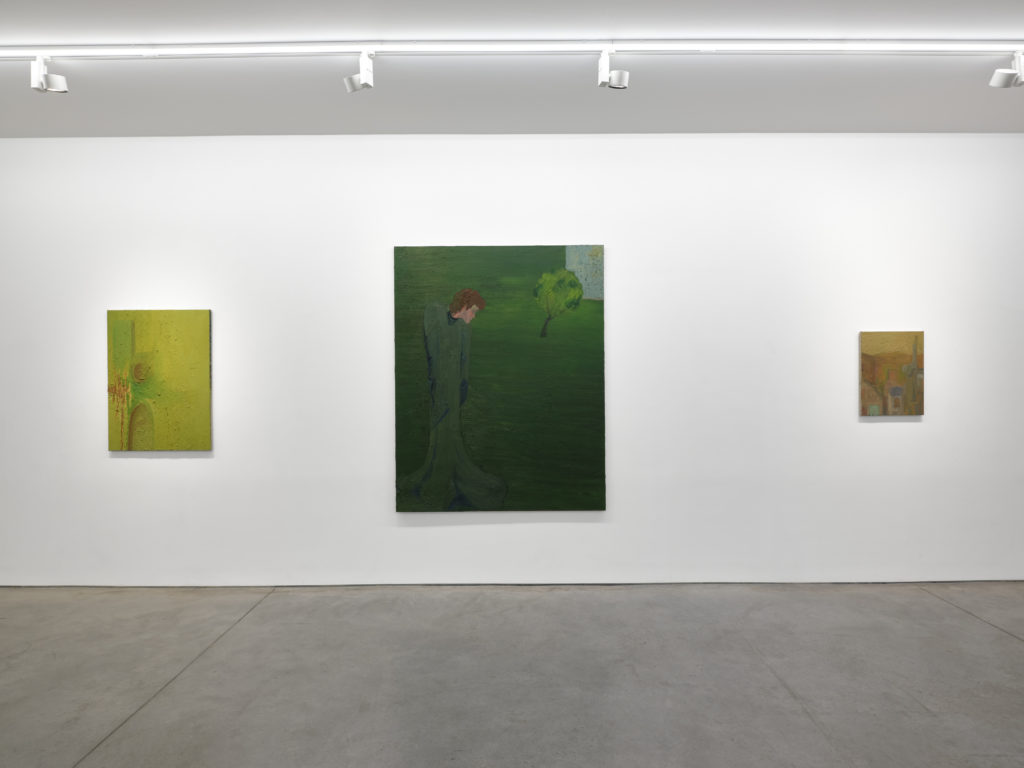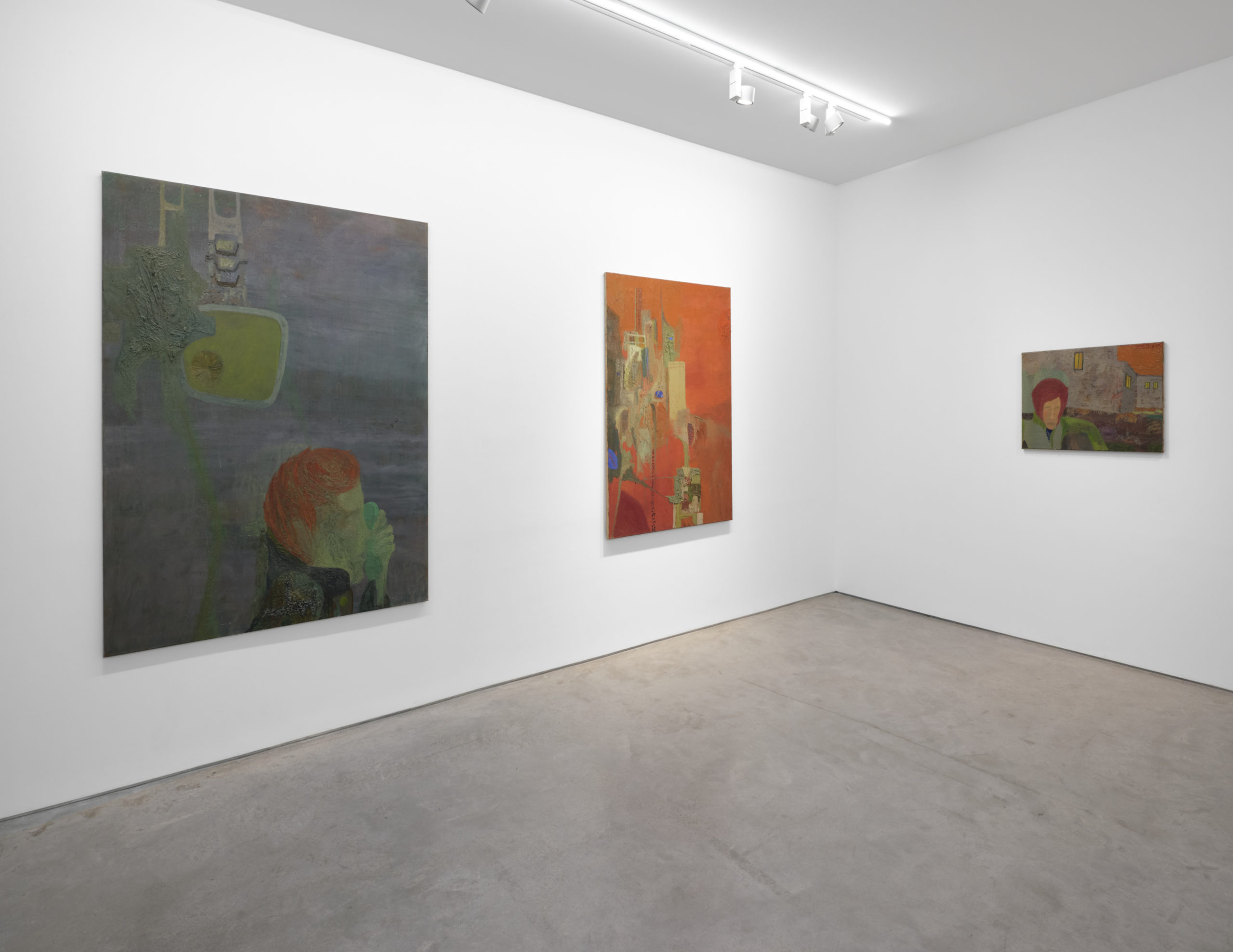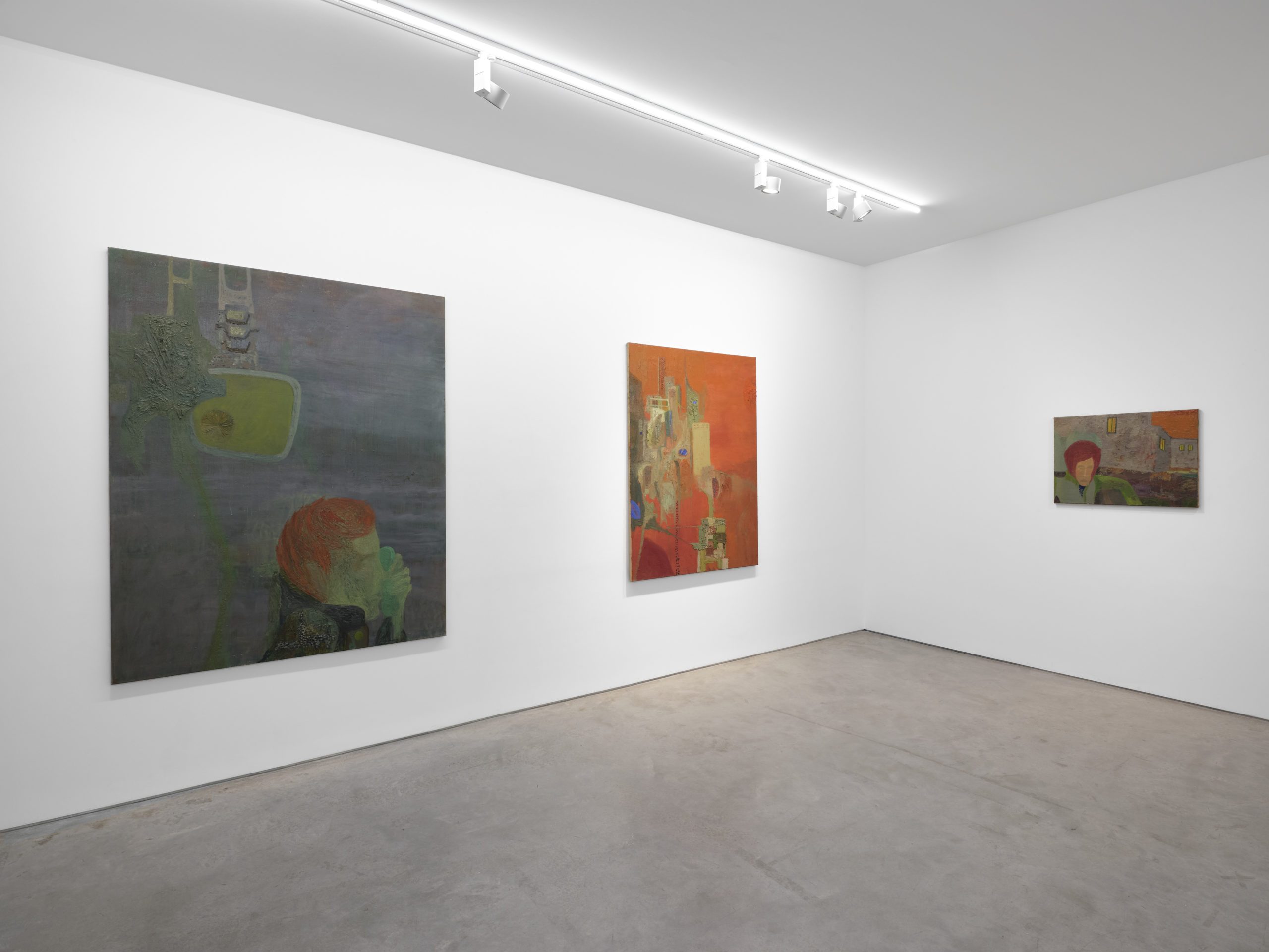 Unlike in prior works, the series veers from abstraction to figuration in a way that it grants near-equal weight. At times, solitary figures are paired with disorienting, chromatic fields; elsewhere, cityscapes get corrupted into congested, loose paint patches. While hinting at a post-industrialized world, the narrative aspects of the works engineer a decisive incompleteness as the figuration does not give way to resolved narratives, adumbrating the works with sustained ambiguity.