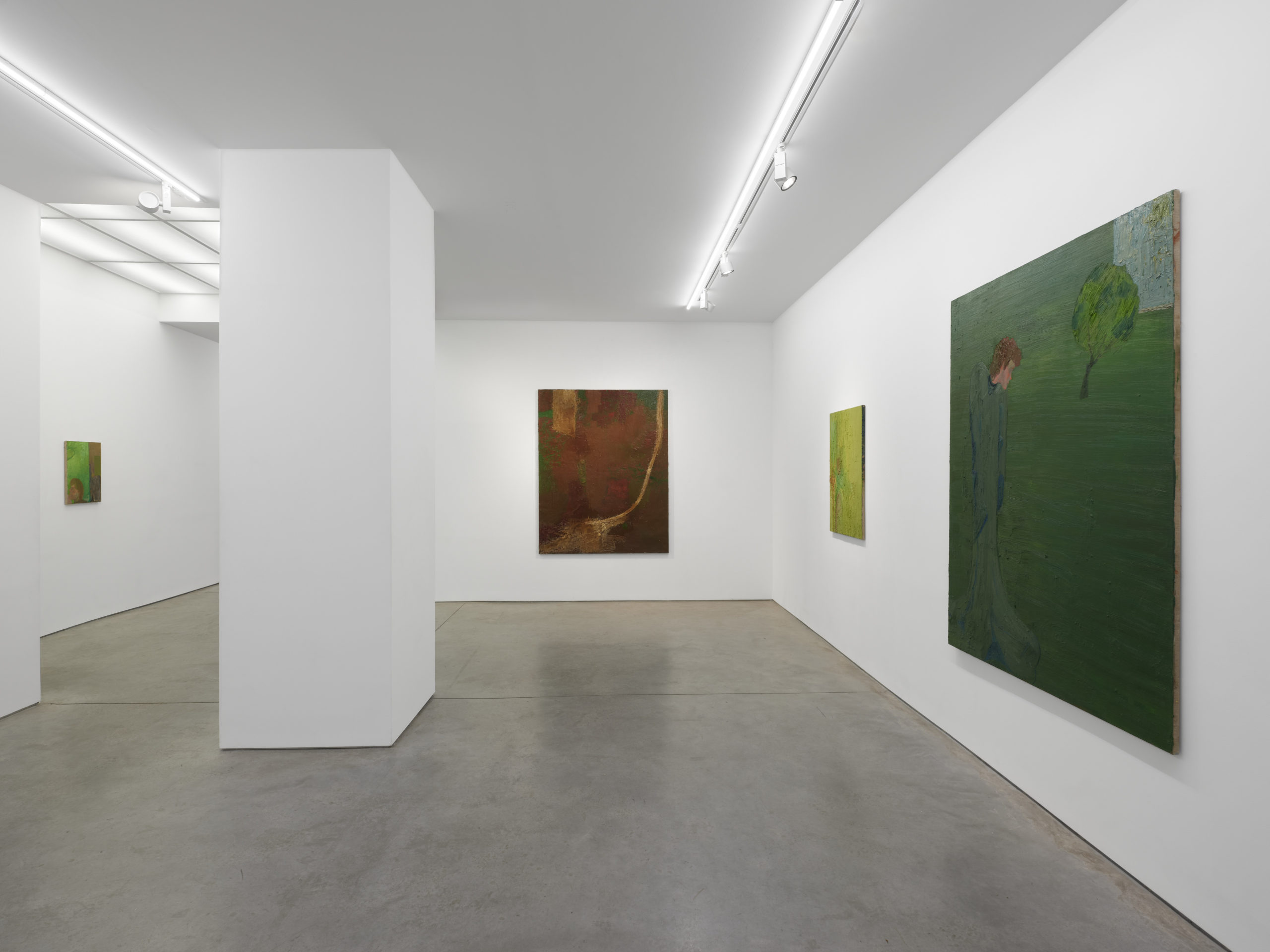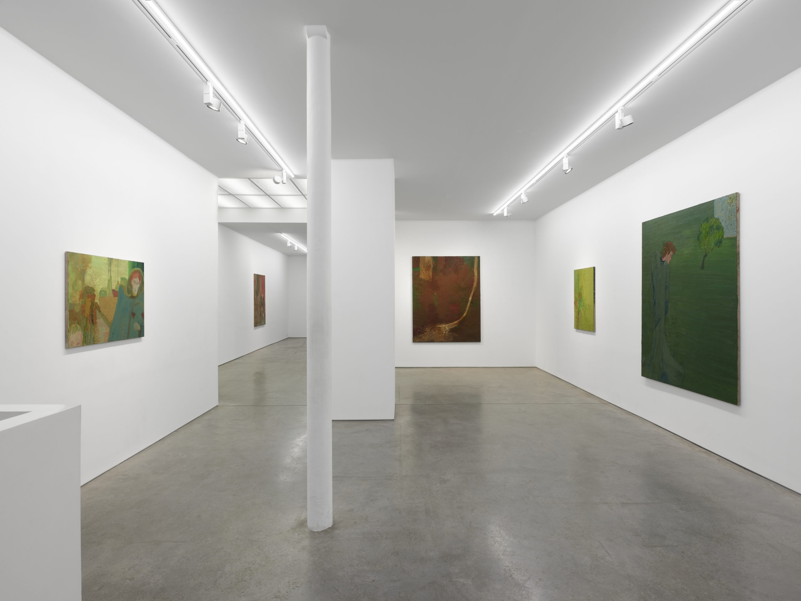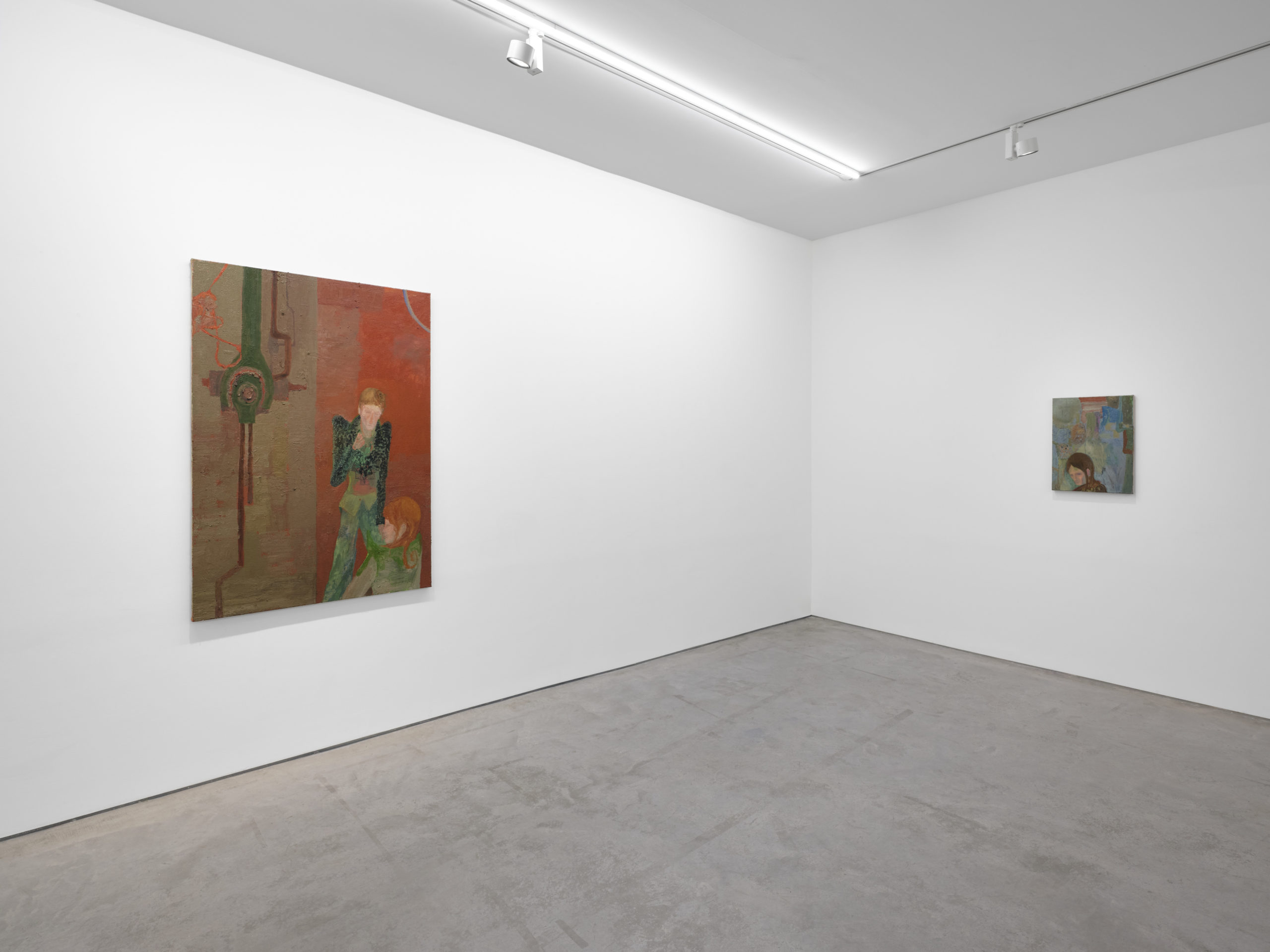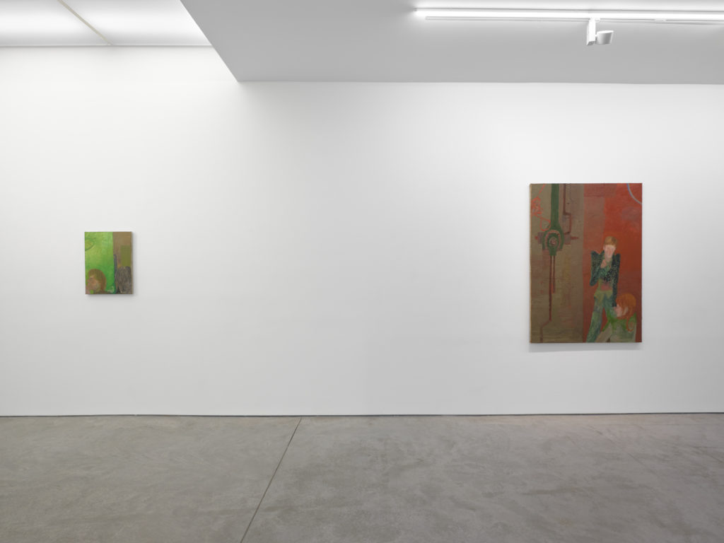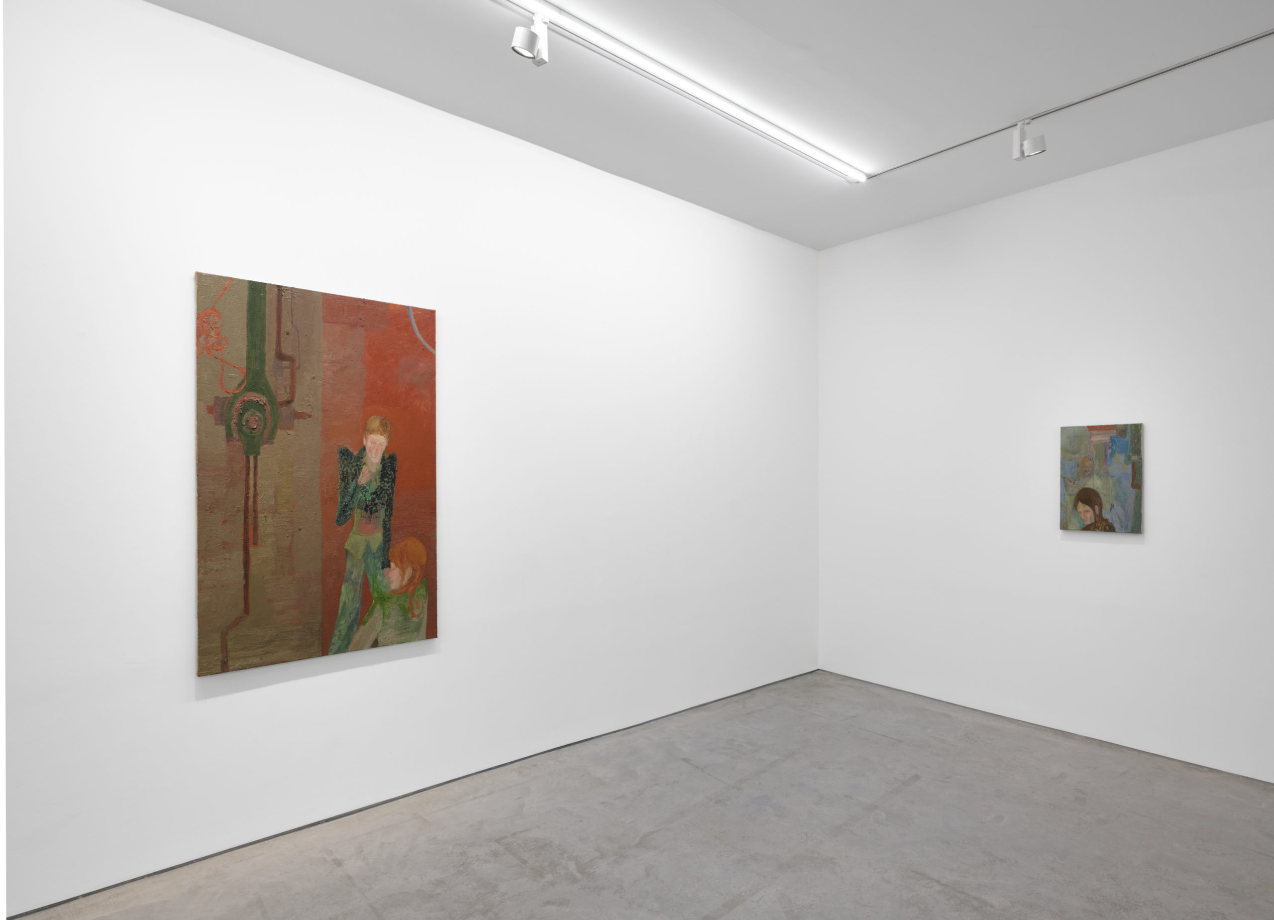 Unlike in prior works, the series veers from abstraction to figuration in a way that it grants near-equal weight. At times, solitary figures are paired with disorienting, chromatic fields; elsewhere, cityscapes get corrupted into congested, loose paint patches. While hinting at a post-industrialized world, the narrative aspects of the works engineer a decisive incompleteness as the figuration does not give way to resolved narratives, adumbrating the works with sustained ambiguity.